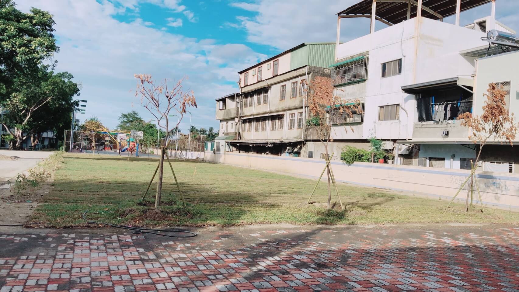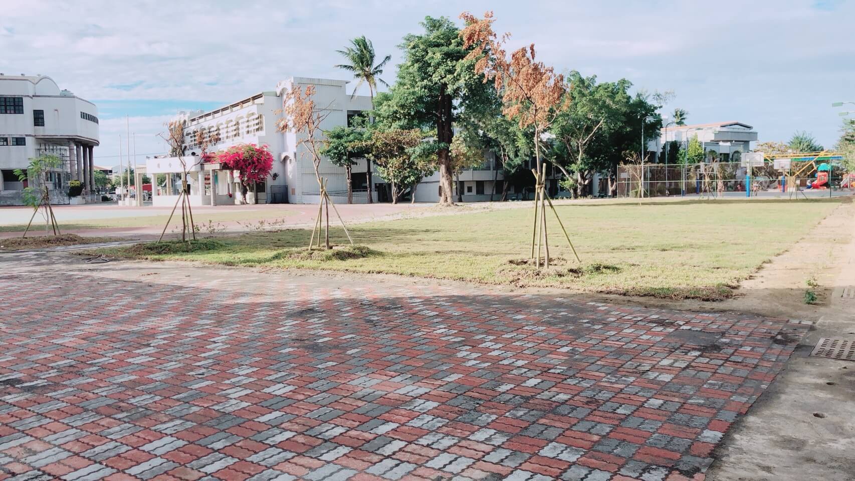 拆除前,拆除中,拆除完成鋪設連鎖磚及種植草皮